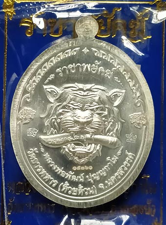 เหรียญหลวงพ่อพัฒน์ วัดห้วยด้วน "รุ่นราชาพยัคฆ์ปี" 2563 เนื้อเงินลายเสือ ลงยาน้ำเงิน ลงยาจีวร เลขสวย |