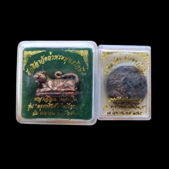 ++ รูปหล่อ + เหรียญพญาเสือนอนกิน หลวงพ่อประสูติ วัดในเตา ปี2565 รุ่น ครูยกศิษย์ให้เ หนือดวง พุทธาภิเษกในน้ำมันราชาพยัคฆ์