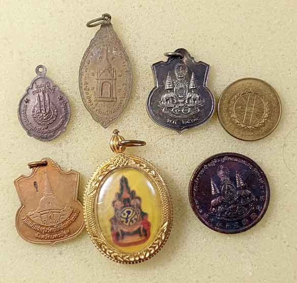 เหรียญร.1 + เหรียญร.5 3 เหรียญ + เหรียญร.6 + ล็อกเก็ต ร.9 +เหรียญ แปดเซียน โพวเทียนตังเข่ง ฉลองครองราชย์ 50 ปี รัชกาลที่ 9 |