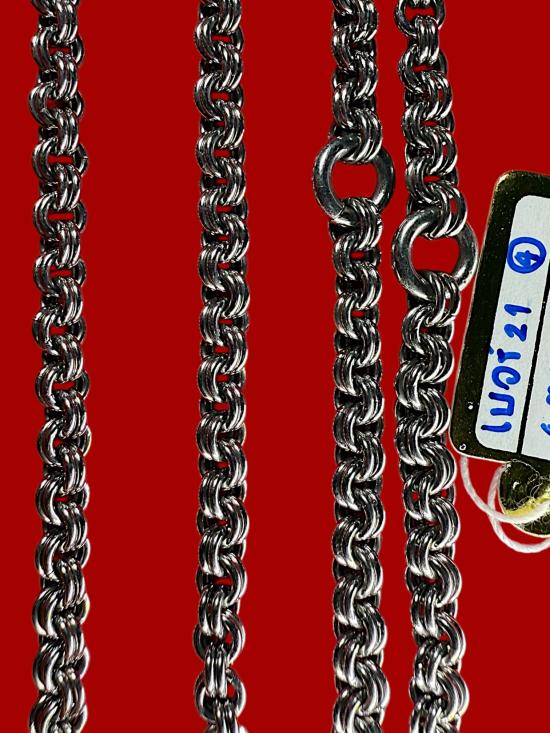 สร้อยแบรน100% ลายห่วงคู่ เบอร์21หนา 4 มิล ใส่พระได้ 9องค์ ความยาว32นิ้ว ครับ |