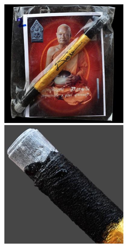 ชื่อพระเครื่อง ตะกรุดมหาปราบ (ระงับภัยให้ทรัพย์) ยุคแรก สร้างน้อย 324 ดอก ปี 2550 หลวงปู่นิเวศน์ วัดทุ่งกระเจ็ด จ.สุพรรณบุรี พร้อมซองรูปใบฝอยเดิมจากวัด