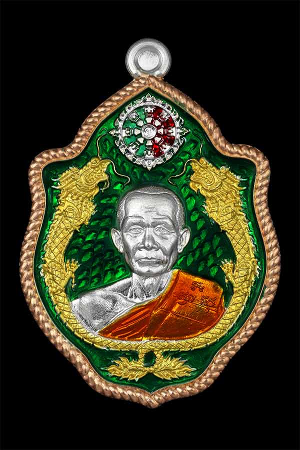 เหรียญมังกรคู่ยอดเฮง หลวงปู่ยอด วัดตะคร้อ จ.นครราชสีมา เนื้อเงินลงยาเขียว พิเศษมังกรทอง หมายเลข 85 รับประกันพระแท้จ้า |