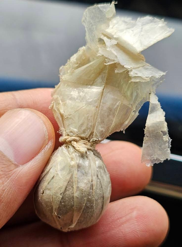 เริ่มต้นที่ 520 จบเท่าไหนเท่านั้น ลูกอมห่อกระดาษแก้ว หลวงพ่อผินะ วัดสนมลาว เม็ดนี้ห่อกระดาษแก้วเดิมๆสีกระดาษซีดตามอายุครับ จัดสร้างราวๆปี๒๕๑๐-๒๕๒๐ ครับ |