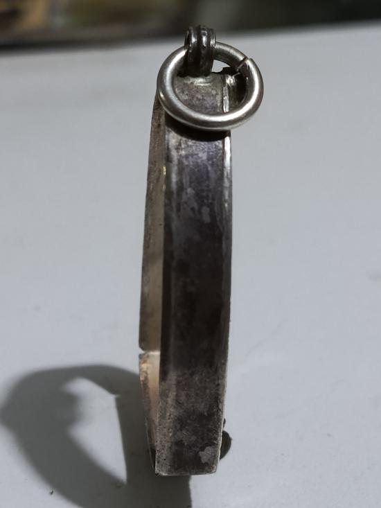 กรอบเงินเก่าแท้ ฝังพลอยแดง งานสั่งทำเก่า ใส่เหรียญเจ้าสัวหลวงปู่บุญและเจ้าสัวทุกรุ่น ขนาด 2.5 ซม.4.2 ซม.หนา 7 มม. หนาหนัก 4.83 กรัม |