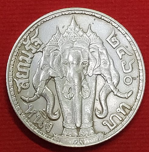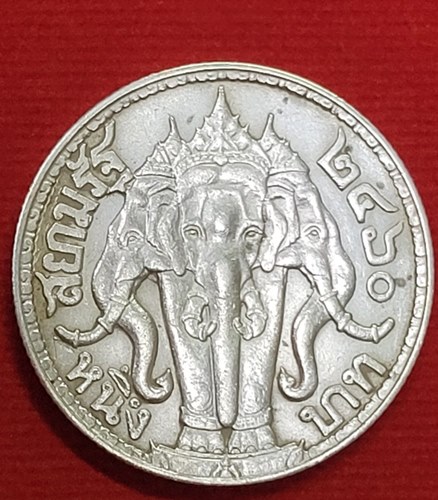 เหรียญหนึ่งบาท รัชกาลที่ 6 หลังช้างสามเศียร พ.ศ.2460 |