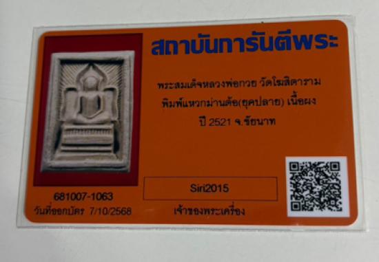 พระสมเด็จแหวกม่านหลวงพ่อกวย ปี 2521 เนื้อผง พิมพ์ต้อ วัดโฆสิตาราม จ.ชัยนาท ออกบัตรแล้วเรียบร้อย(1) |