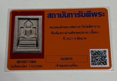 พระสมเด็จแหวกม่านหลวงพ่อกวย ปี 2521 เนื้อผง พิมพ์ต้อ วัดโฆสิตาราม จ.ชัยนาท ออกบัตรแล้วเรียบร้อย(2)