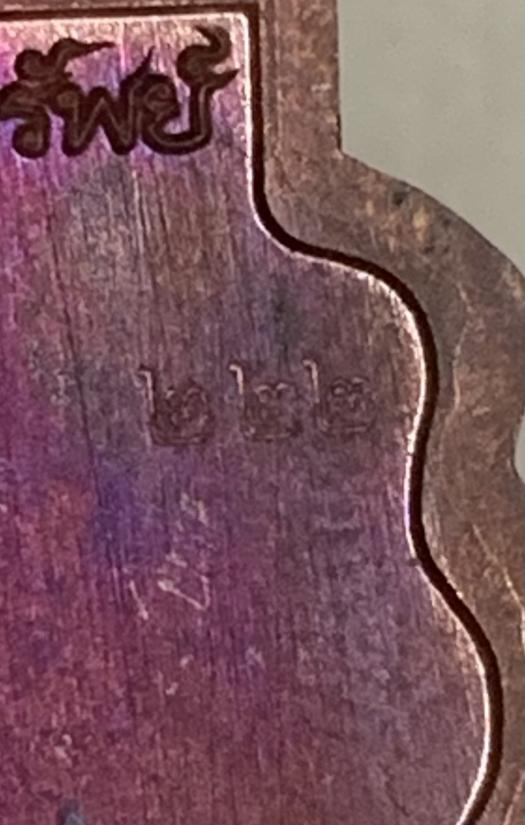 1 ใน 20 เหรียญเสมาพญาเสืออุดมทรัพย์ พระอาจารย์ประสูติ (หลวงพ่อประสูติ) วัดในเตา จ.ตรัง เนื้อนวะโลหะผิวม่วงหน้ากากชุบทองขอบชุบทองลงยาขอบ บล็อคหลังเรียบเสือ หน้ากากชุบทองเสือ เลขตองสวยๆNO.222(เลขมงคล) |
