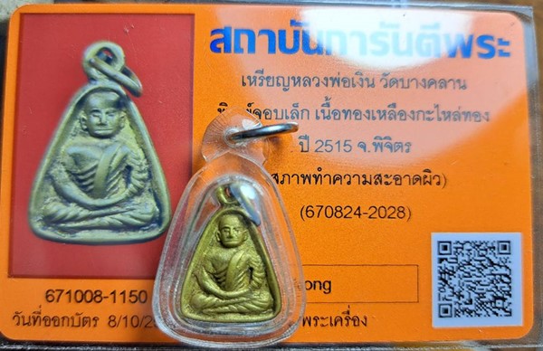 เหรียญหลวงพ่อเงิน วัดบางคลาน จ.พิจิตร พิมพ์จอบเล็ก แขนบั้ง (นิยม) ปี 2515