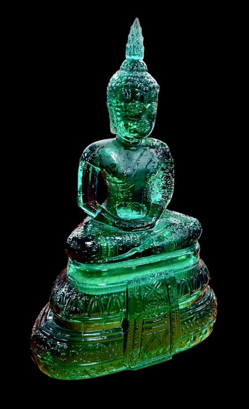 พระแก้วพิธี 25 พุทธศตวรรษ บล็อค สงวนลิขสิทธิ์ รุ่น พิเศษ (หนาพิเศษ) เนื้อแก้วสีเขียวมรกรต(สวยหายากครับ) หน้าตัก 5 นิ้ว สภาพสวยสมบูรณ์ครับ