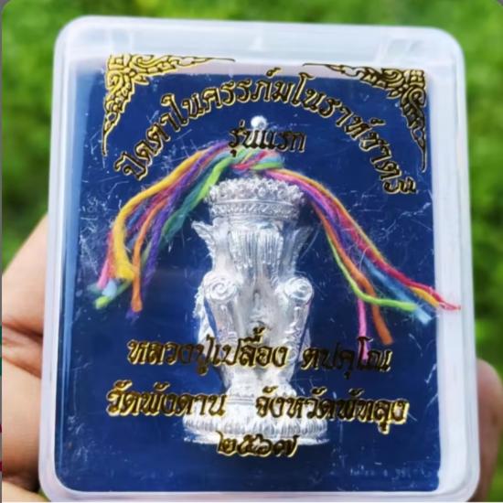 พระปิดตาในครรภ์โนราห์ชาตรี (รุ่นแรก) หลวงปู่เปลื้อง ตปคุโณ วัดพังดาน พัทลุง เนื้อโลหะอาถรรภ์ชุบเงิน สวยๆกล่องเดิม จำนวนสร้าง 1,000 องค์ วัดใจ 100 แดงครับ