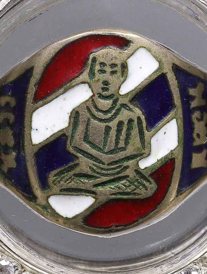 หัวแหวนรุ่นแรก เนื้ออัลปาก้าลงยา ลายธงชาติ หลวงพ่อทบ วัดชนแดน รุ่นนี้สร้างปี พ.ศ.2483 ที่วัดทรงธรรม อ.ทับคล้อ จ.พิจิตร พร้อมเลี่ยมเงินแท้