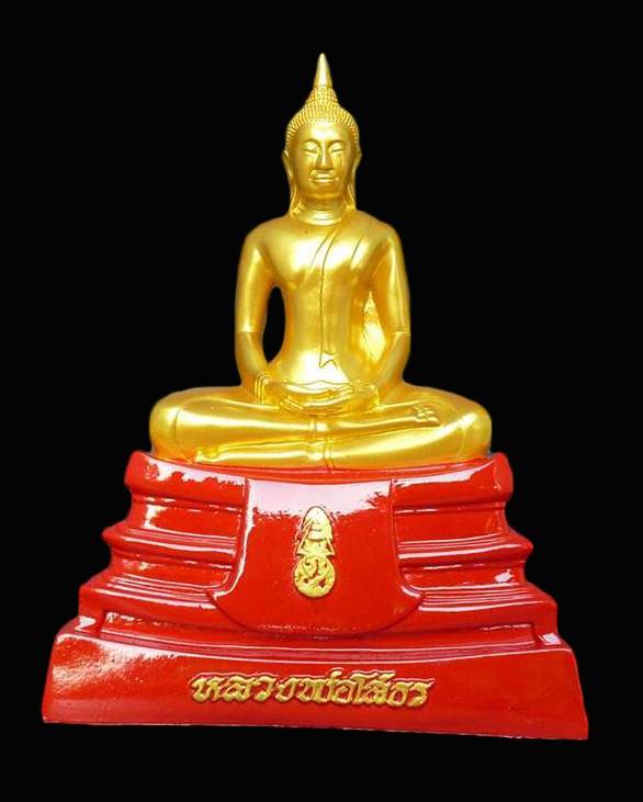 พระบูชา หลวงพ่อโสธร เนื้อเรซินองค์ทอง ฐานแดง ขนาด หน้าตัก 5 นิ้ว ความสูง 9.5 นิ้ว |