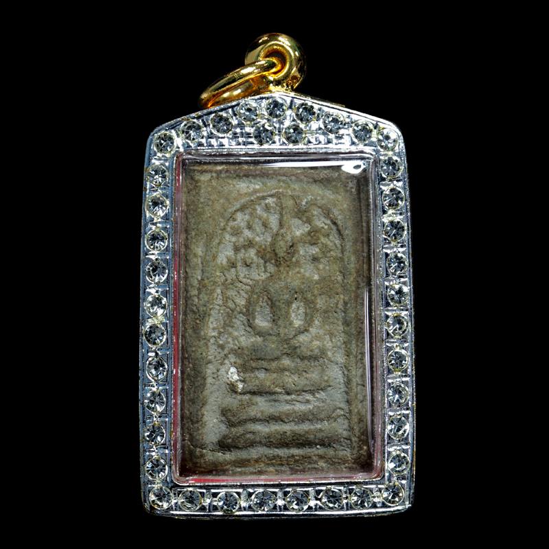 พระสมเด็จ กรุวัดบึงพระยาสุเรนทร์ พิพม์ปรกโพธิ์ เนื้อผง กรุงเทพฯ (กรุเก่า) พร้อมบัตร และตลับชุบทองฝังเพชร |