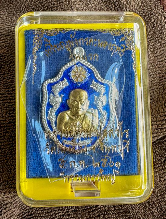 เคาะเดียวแดง เหรียญมังกรคะนองฤทธิ์ปู่ทวน เนื้อเงินลงยาน้ำเงิน หน้ากากทองคำ เลข82ครับ |