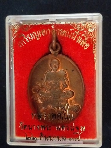 เหรียญปั้มแบน-พิมพ์รูปไข่ใหญ่-มีห่วง ((เนื้อทองแดง-ผิวไฟ-ผิวเดิมๆ)) ล.พ.เปิ่น ฐิตคุโณ วัดบางพระ จ.นครปฐม รุ่นเอกลักษณ์นั่งเสือ เมื่อ 22 กย. 2537 ((พร้อมกล่องเดิมๆ-ใหม่กริ๊บ-สวย-สมบูรณ์))