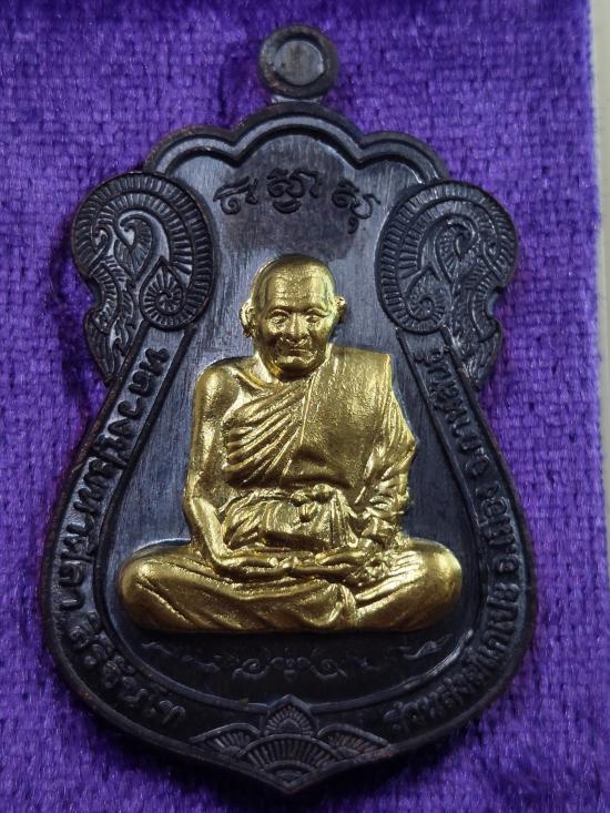 เสมารุ่นรวยทันใจ ปี 2564 หลวงปู่ศิลา สิริจันโท เนื้อทองแดงรมดำ หน้ากากทองทิพย์ แจกกรรมการ สร้าง 1,999 เหรียญ no.56