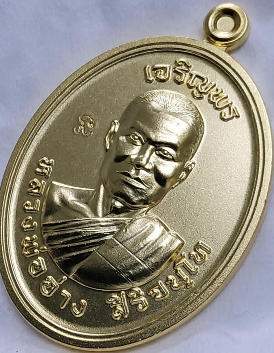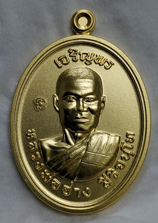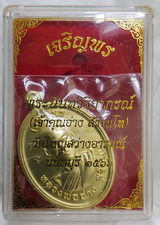 เหรียญเจริญพรเนื้อทองแดงกะไหล่ทองคำแท้ หลวงพ่ออ่าง วัดใหญ่สว่างอารมณ์ นนทบุรี มีเลขกำกับ กล่องเดิม