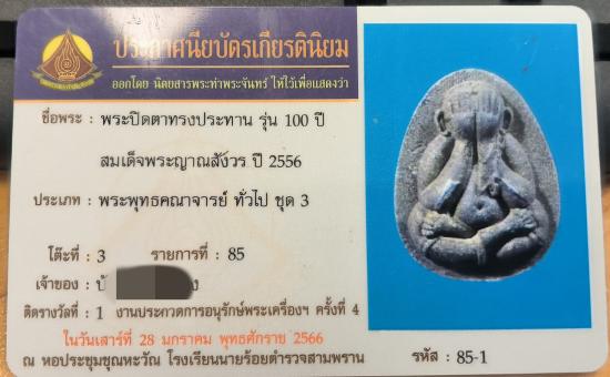 วัดใจ เคาะเดียวแดง พระปิดตาทรงประทาน รุ่น 100 ปี สมเด็จพระญาณสังวร ปี 56 วัดบวรนิเวศฯ ฝังตะกรุดเงิน 3 ดอก (ทั่วไป 2 ดอก) สภาพสวย เลขประจำองค์พระ 29