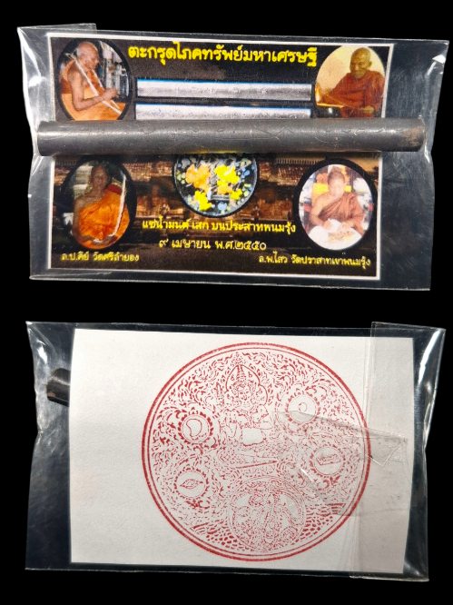 ตะกรุดโภคทรัพย์มหาเศรษฐี แช่น้ำมนต์ เสก บนปราสาทพนมรุ้ง เมื่อวันที่ 9 เมษายน 2550 เนื้อตะกั่ว |