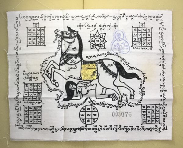 ***เคาะเดียว***้ผ้ายันต์ม้าเสพนาง รุ่นแรก สีดำ ครูบาบุดดา วัดหนองบัวคำ จ.ลำพูน โค๊ดตรายาง # 3076 |