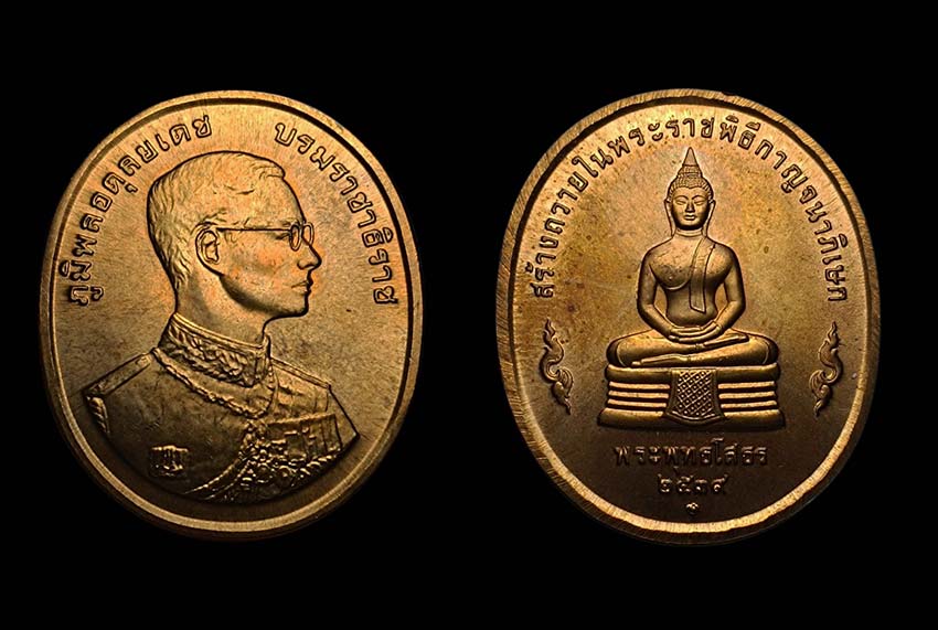 พระเหรียญชุดพระพุทธปัญจภาคี ครบชุด 5 เหรียญ ที่ระลึกพระราชพิธีกาญจนาภิเษก ในหลวงรัชกาลที่ 9 หลังหลวงโสธร, หลังพระพุทธชินราช, หลังพระพุทธชินสีห์, หลังพระมงคลบพิตร, หลังพระนิรันตราย ปี พ.ศ.2539