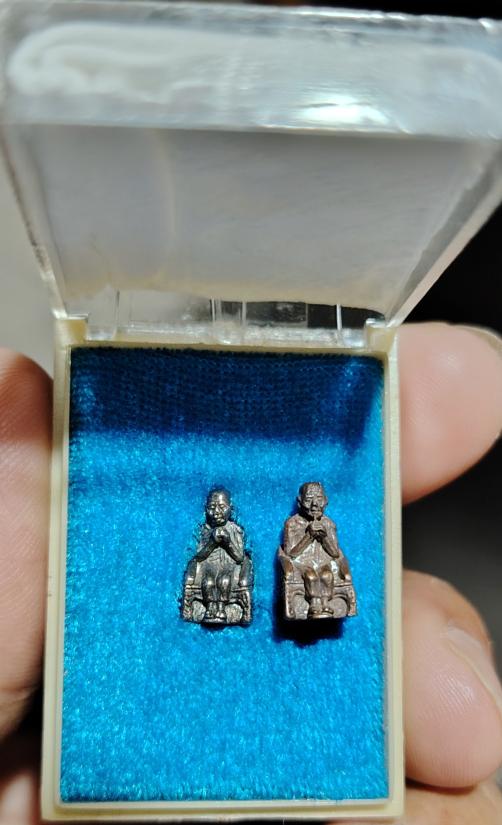 หลวงพ่อเกษมนั่งภาวนาจิ๋วเนื้อเงินมีกล่องเดิมสวยๆหายากมากๆคู่กับนวะไม่มีกล่อง