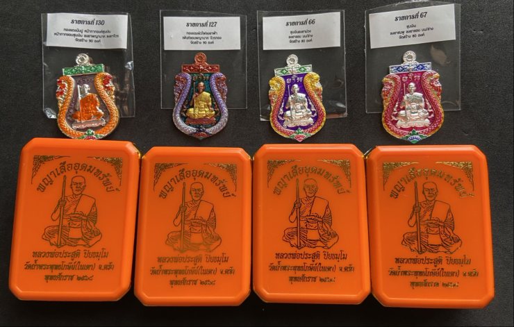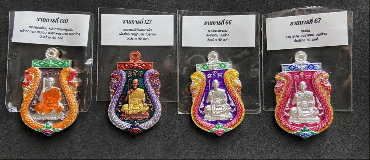 วัดใจเคาะเดียวแดงจ้า เหรียญเสมาพญาเสืออุดมทรัพย์ พระอาจารย์ประสูติ วัดในเตา คละเนื้อ จำนวน4เหรียญ เคาะเดียวแดงจ้า |