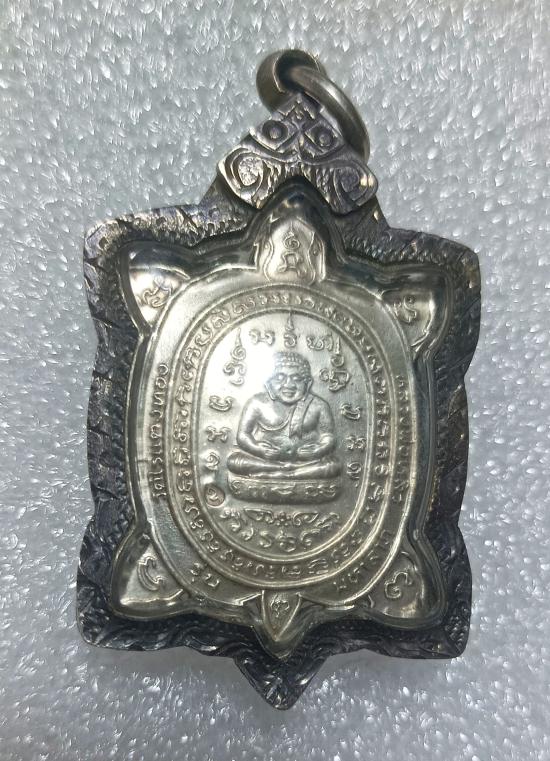 เหรียญพญาเต่าเรือน รุ่นมหาลาภ หลวงปู่หลิว วัดไร่แตงทอง จ.นครปฐม ปี 2536 เนื้อเงิน เลี่ยมกรอบเงิน หายาก