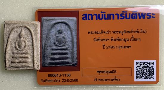 พระสมเด็จเผ่า วัดอินทร์ พิมพ์อกนูน เนื้อผง ปี 2495 พร้อมบัตรรับรอง เคาะเดียว