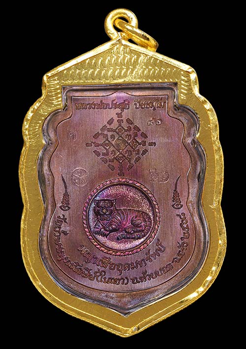 1 ใน 90 เหรียญเสมาพญาเสืออุดมทรัพย์ พระอาจารย์ประสูติ (หลวงพ่อประสูติ) วัดในเตา จ.ตรัง เนื้อทองแดงมันปูลงยาขาวลงยาพญานาคฝังพลอยขาวสังฆาฏิ1เม็ด เลขเสวยNO.86 เลี่ยมกรอบทองอิตาลี่พร้อมบูชาครับ