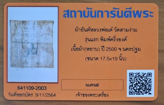 ผ้ายันต์ ลพ.เต๋ วัดสามง่าม รุ่นแรก ปี2500