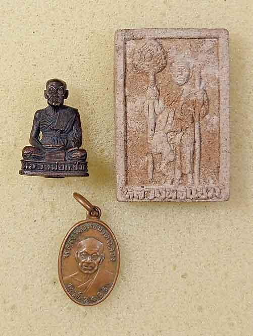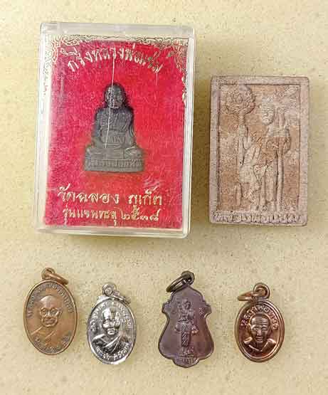 หลวงพ่อแช่ม วัดฉลอง ภูเก็ต 3 องค์ + เม็ดแตง พระชยาภิวัฒน์ สุราษฎร์ธานี + เหรียญหลวงปู่อุ้ย วัดคอหงษ์ สงขลา + เม็ดแตงหลวงปู่ทวด วัดห้วยมงคล