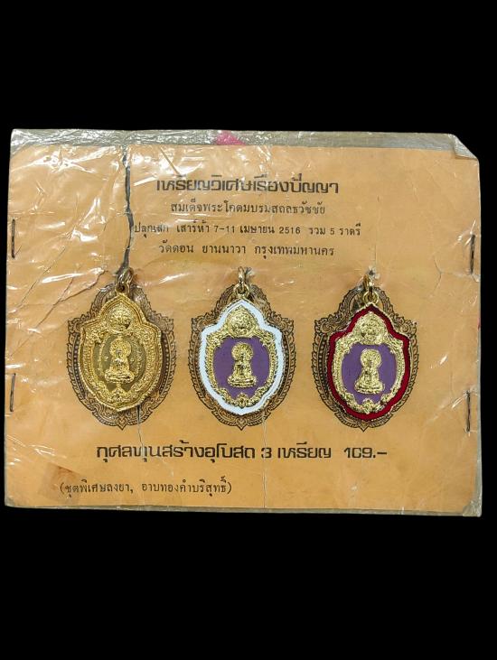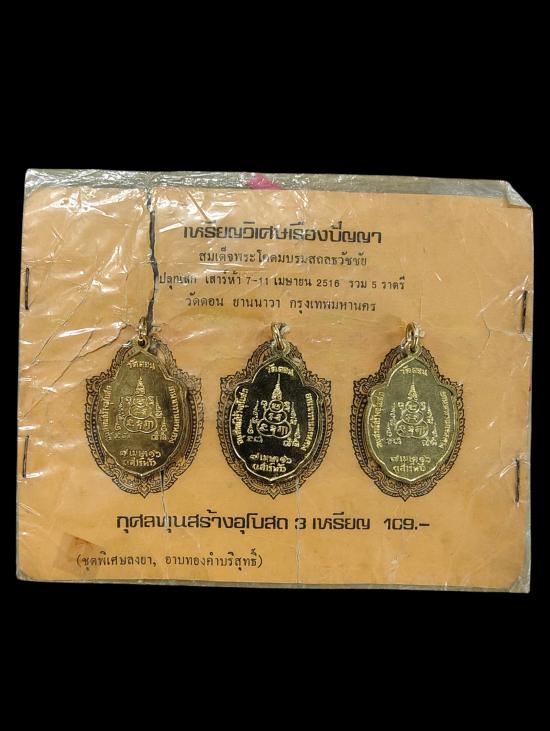 เหรียญวิเศษเรืองปัญญา วัดดอนยานนาวา รุ่นเสาร์ 5 ปี พ.ศ.2516 เนื้อทองแดงกะหลั่ยทอง และ เหรียญกะหลั่ยทองลงยา 2 เหรียญ ปู่โต๊ะ อจ.นำ ปลุกเสก เป็นชุดพร้อมใบปิดเดิมจากวัดสวยเดิมๆครับ ยินดีรับประกันตามกฏเวปจีพระครับ