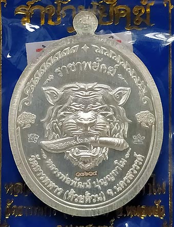 เหรียญหลวงพ่อพัฒน์ วัดห้วยด้วน "รุ่นราชาพยัคฆ์ปี" 2563 เนื้อเงินลายเสือ ลงยาน้ำเงิน ลงยาจีวร