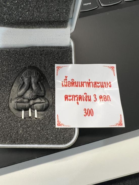 เนื้อดินเผาท่าสะแบง ตะกรุดเงิน 3 ดอก เคาะเดียวแดง |