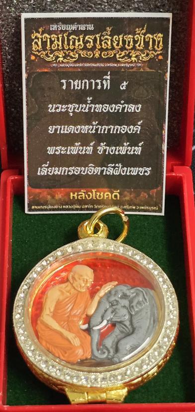 เนื้อนวะโลหะ ชุบน้ำทองคำ ลงยาแดง หน้ากากองค์พระ,ช้างเพ้นสวยมาก ใส่ตลับชุบทองอิตาลีฝังเพชร