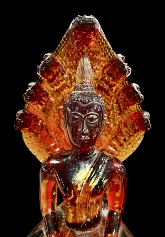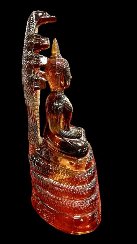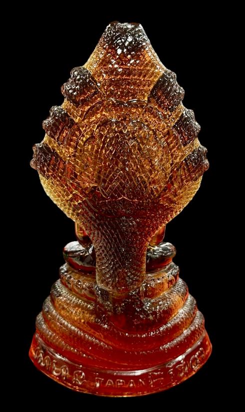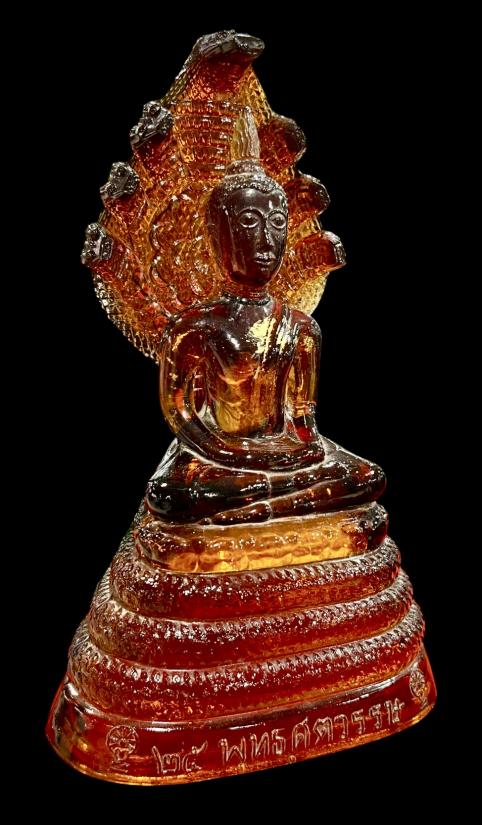 พระแก้วพิธี 25 พุทธศตวรรษ ปางนาคปรก บล็อค JAPAN เนื้อแก้วสีน้ำผึ้ง พิมพ์ใหญ่ สภาพสวยสมบูรณ์ครับ (ใบปรกเสริม) ราคาเบาๆครับ