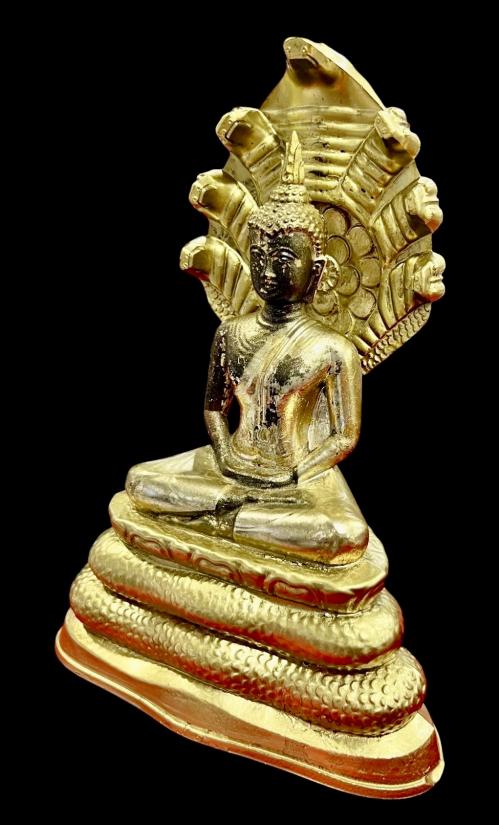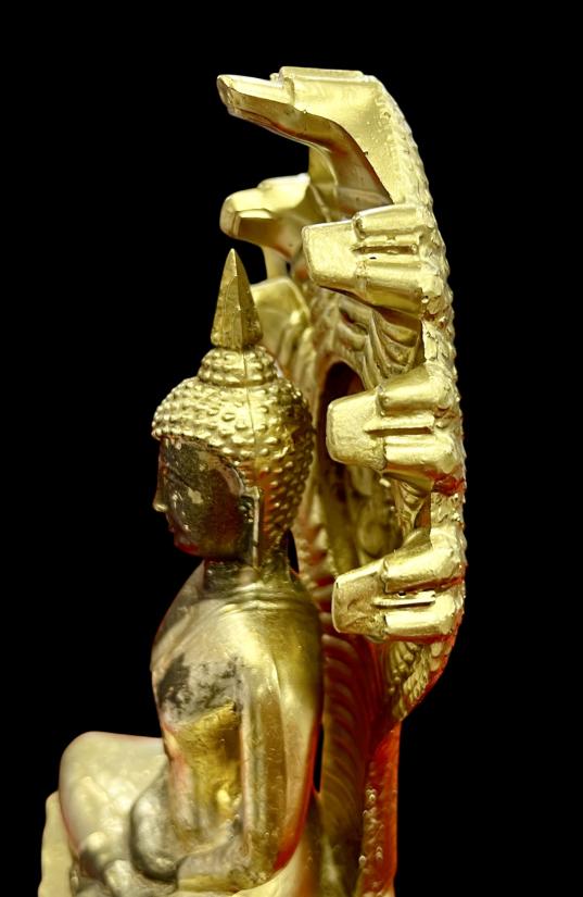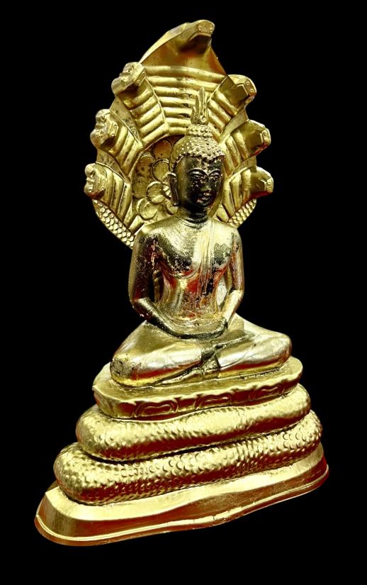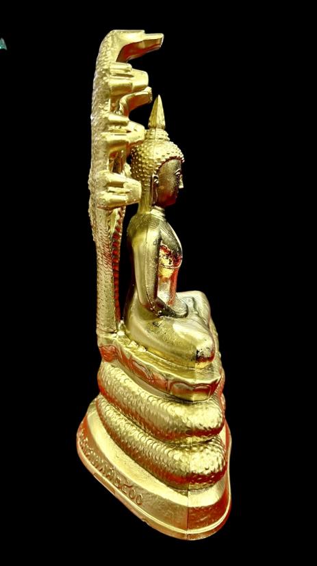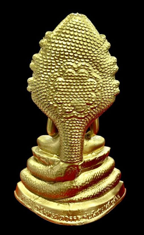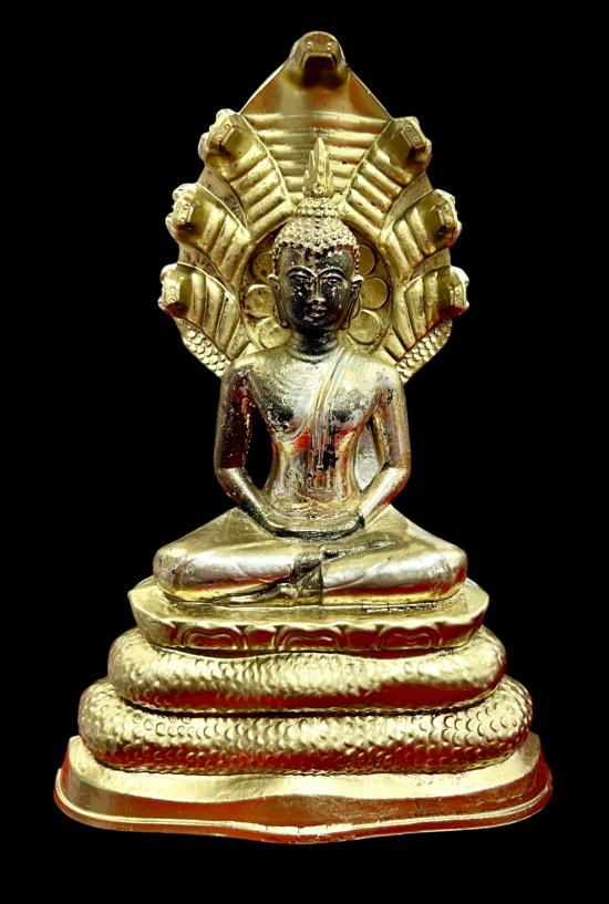 พระแก้วพิธี 25 พุทธศตวรรษ ปางนาคปรก บล็อค เนื้อแก้วสีน้ำผึ้ง พ่นทอง พิมพ์เล็ก ก้นปั้มยันต์หลวงพ่อเต๋ สภาพสวยครับ (ใบปรกเสริม) ราคาเบาๆครับ