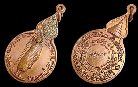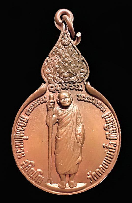 เหรียญทองแดงใหญ่ยืนถือไม้เท้าหลัง พระฉายาสิรินธร หลวงปู่แหวน วัดดอยแม่ปั๋ง ปี 2520