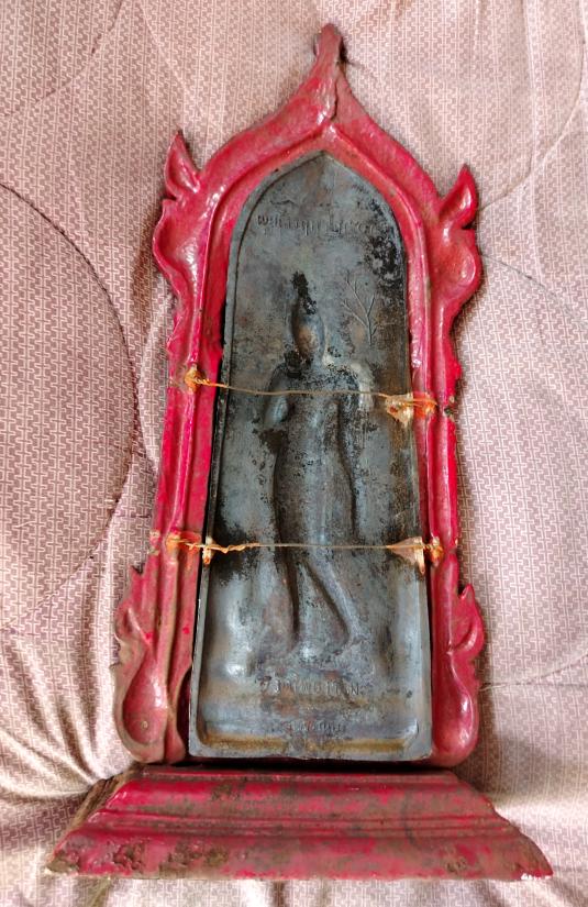 องค์นี้เป็นพระลีลากำแพงศอกของหลวงพ่อขอม วัดไผ่โรงวัวหรือชื่อวัดโพธาราม หล่อด้วยเนื้อตะกั่วเก่า ที่นำมาจากพระกำแพงศอกเนื้อตะกั่วเก่าที่หักจากกรุวัดพระศรีรัตนมหาธาตุจังหวัดสุพรรณบุรี จึงทำให้องค์พระมีมวลสารศักดิ์สิทธิ์เก่าเป็นองค์ประกอบในการจัดสร้าง สำหรับองค์นี้เป็นอีกหนึ่งพิมพ์นิยมเล่นหาเป็นมาตรฐานมานานแล้วครับที่เรียกว่าพิมพ์หลังพอจุด เป็นพระเนื้อตะกั่วเก่าที่ดูง่ายมากมาพร้อมซุ้มปิดทองพร้อมตั้งบูชา ถ้ายังไม่เคยมีไว้บูชาแนะนำครับว่าเป็นพระที่บูชาแล้วดี จะเจริญก้าวหน้าดั่งพิมพ์พระมีซุ้มพร้อมตั้งบูชาแล้วครับผม