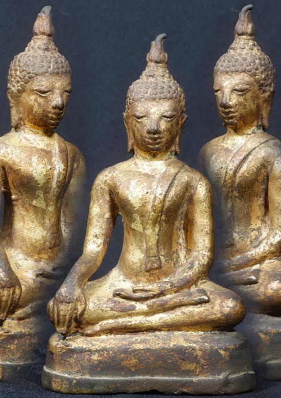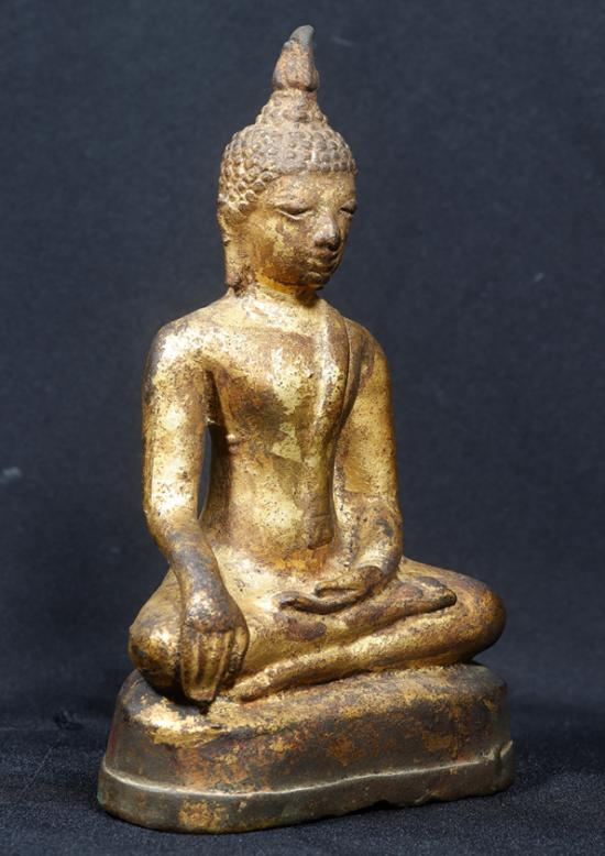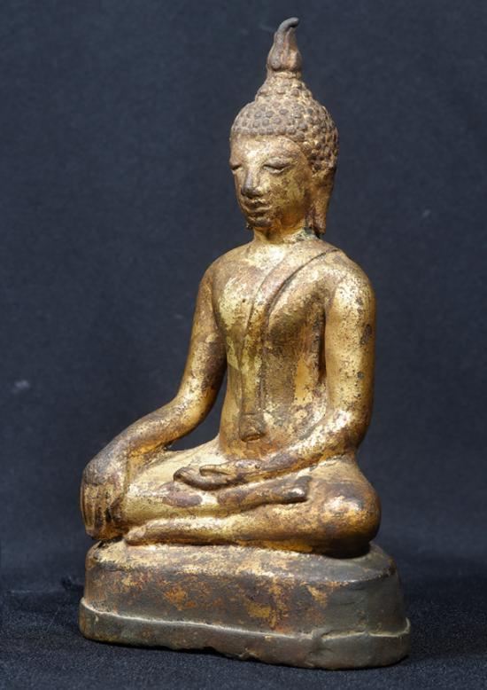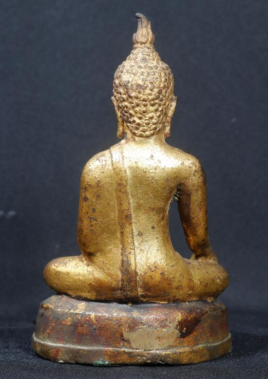 พระพุทธรูปสำริด สมัยเชียงแสนแบบสิงห์สาม(ยุคต้นไม่มีไรพระศก) ลงรักปิดทองเดิมร่องชาด อายุราว 400 ปี สร้างพุทธศตวรรษ ที่ 21 -ขนาดหน้าตัก 3.5นิ้ว สูง6.5นิ้ว