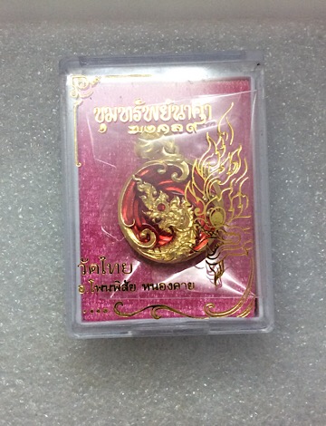 จี้นาคราช ขุมทรัยพ์นาคามงคล9 เนื้อสัมฤทธิ์ชุบทองลงยาแดง วัดไทย จ.หนองคาย กล่องเดิม |