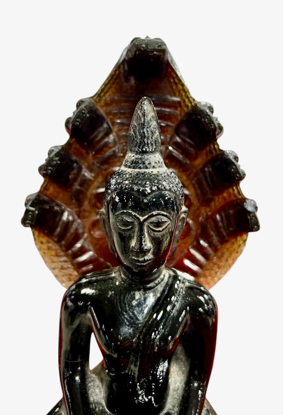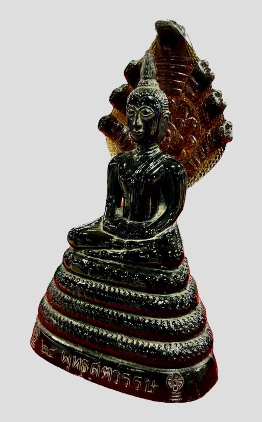 พระแก้วพิธี 25 พุทธศตวรรษ ปางนาคปรก บล็อค JAPAN เนื้อแก้วสีดำนิล(หายากครับ) พิมพ์ใหญ่ สภาพสวยสมบูรณ์ครับ (ใบปรกเสริม) ราคาเบาๆครับ