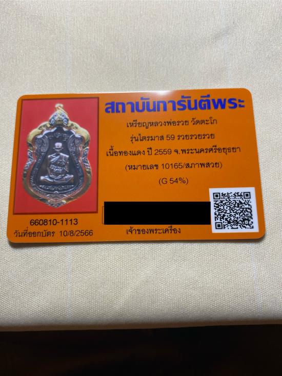 รายละเอียด เหรียญหลวงพ่อรวย วัดตะโก รุ่นไตรมาส59 รวย รวย รวย เนื้อทองแดงปี2559 จ.พระนครศรีอยุธยา เลข10165 สภาพสวย เลี่ยมทองฝังเพชรcz พร้อมบัตรรับรองฯ โอนเงินแล้วแจ้งรายละเอียดการโอนทาง Mailbox ของเวปจี ได้รับแจ้งว่าโอนเงินแล้วจะส่งพระภายใน 3 วันทำการ