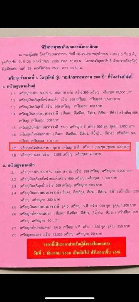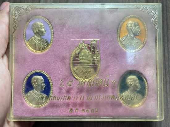 200.- ems เหรียญเสด็จพ่อ ร.๕ วัดสุทัศน์ (พิธีใหญ่ เสกในพระอุโบสถ 3 วัน 3 คืน) กะไหล่ทองลงยา กรรมการ 1 ใน 1555 ชุด (5 สี-5 เหรียญ) สมโภชน์พระอาราม 200 ปี ตอกโค๊ด สวยเดิมๆ กล่องเดิมจากวัด