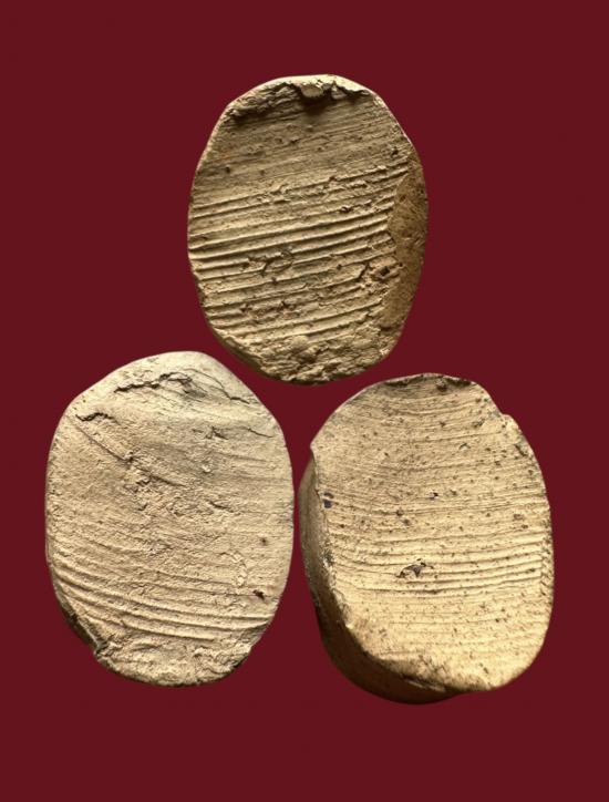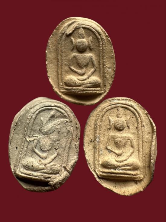 พระเนื้อดิน พิมพ์เม็ดบัว หลวงพ่อขอม วัดไผ่โรงวัว ปี 2505 จ.สุพรรณบุรี