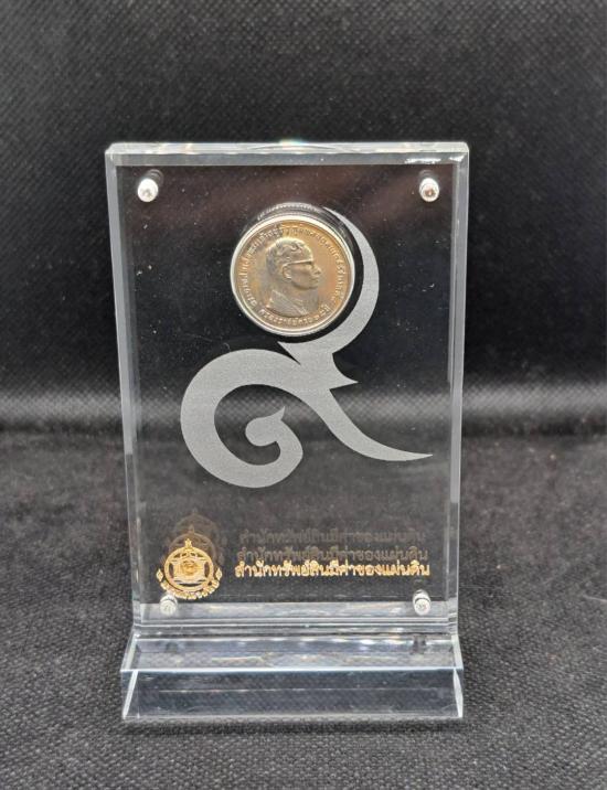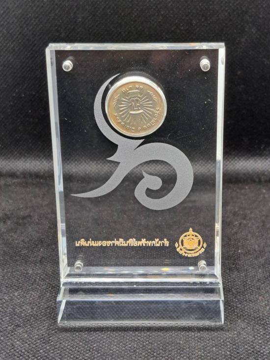 เหรียญเงิน รัชกาลที่ ๙หน้าเหรียญ 10 บาท พร้อมแท่นอคิลิกใส และกล่อง