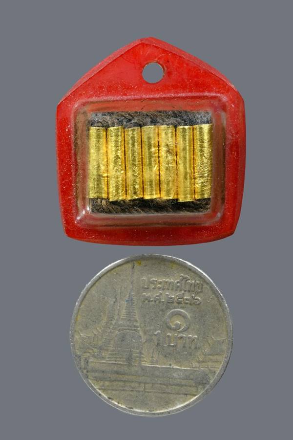 ตะกรุดสาริกาหลวงพ่อคูณ วัดบ้านไร่ จ.นครราชสีมา (เนื้อทองคำ7ดอก) สร้างปี 2536 |