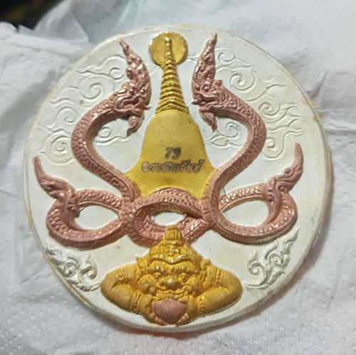199.......เหรียบาตรน้ำมนต์ รุ่นราชาทรัพย์ เนื้อ 3 กษัตริย์ (ทอง เงิน นาก ) 5.5 ซม. สวยเดิมๆ กล่องเดิม |